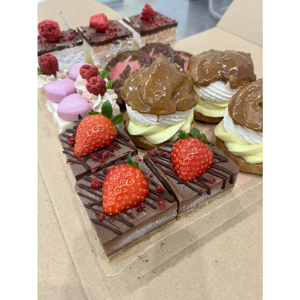 Zloženie krabičky je podľa aktuálnej dostupnosti vyrobených zákuskov - objednávať je možné od utorka do soboty (vyrábať začíname v pondelok).