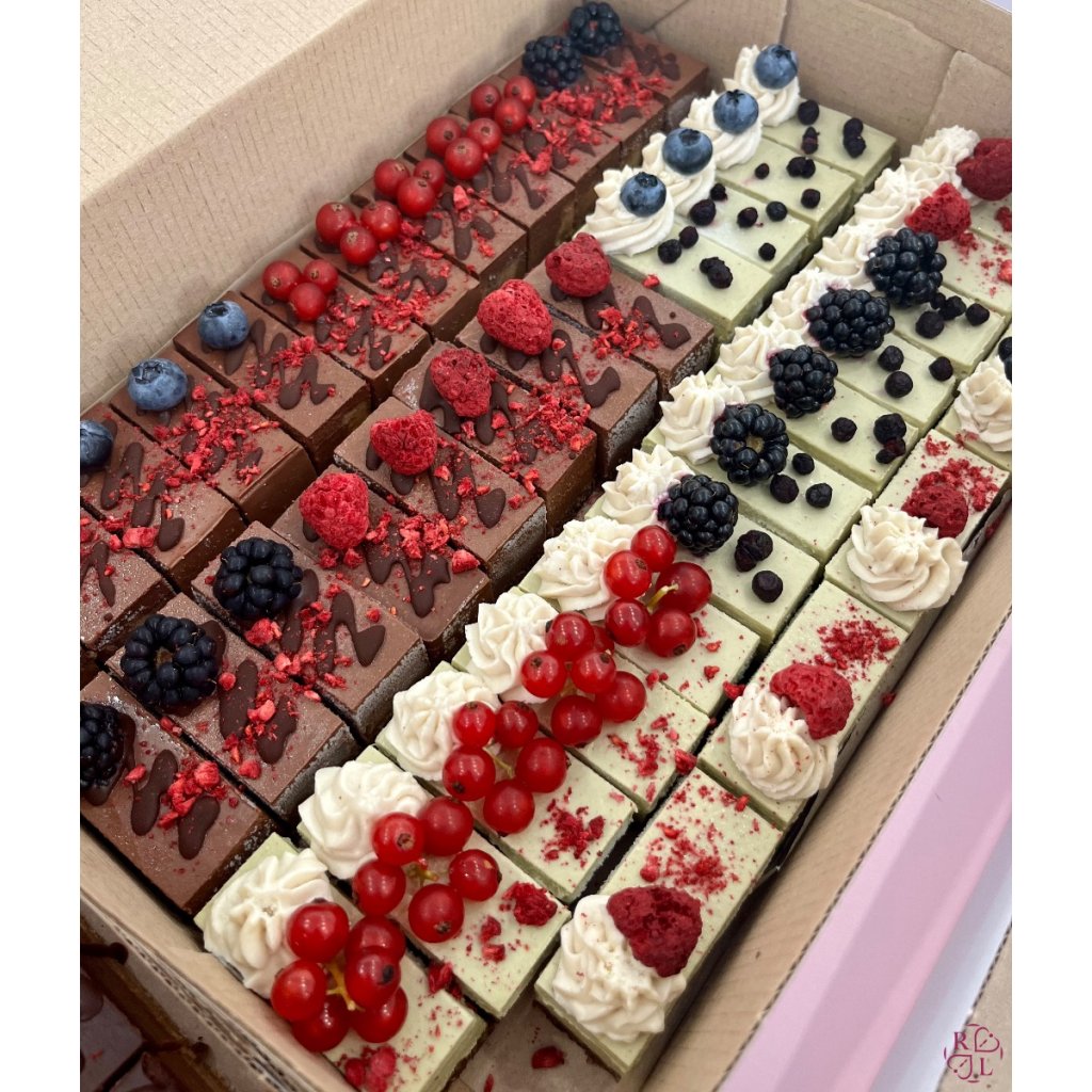 Kešu orechy, čučoriedky, mandle, sušený kokos, bio kokosová múka, bio agávový sirup, bio kokosový olej, kakaové maslo, kokosový nápoj, citrónová šťava, himalájska soľ + ovocie čerstvé/lyo na zdobenie